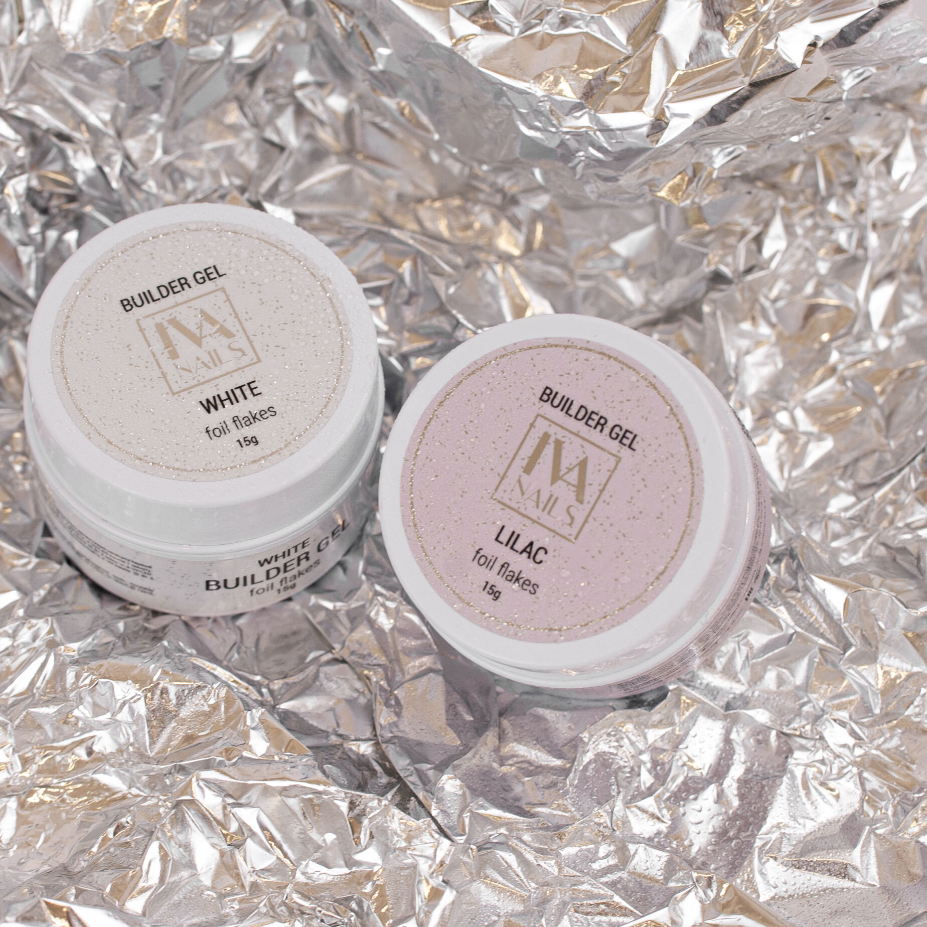 Коллекция нежных гелей с мелкой мерцающей серебряной поталью