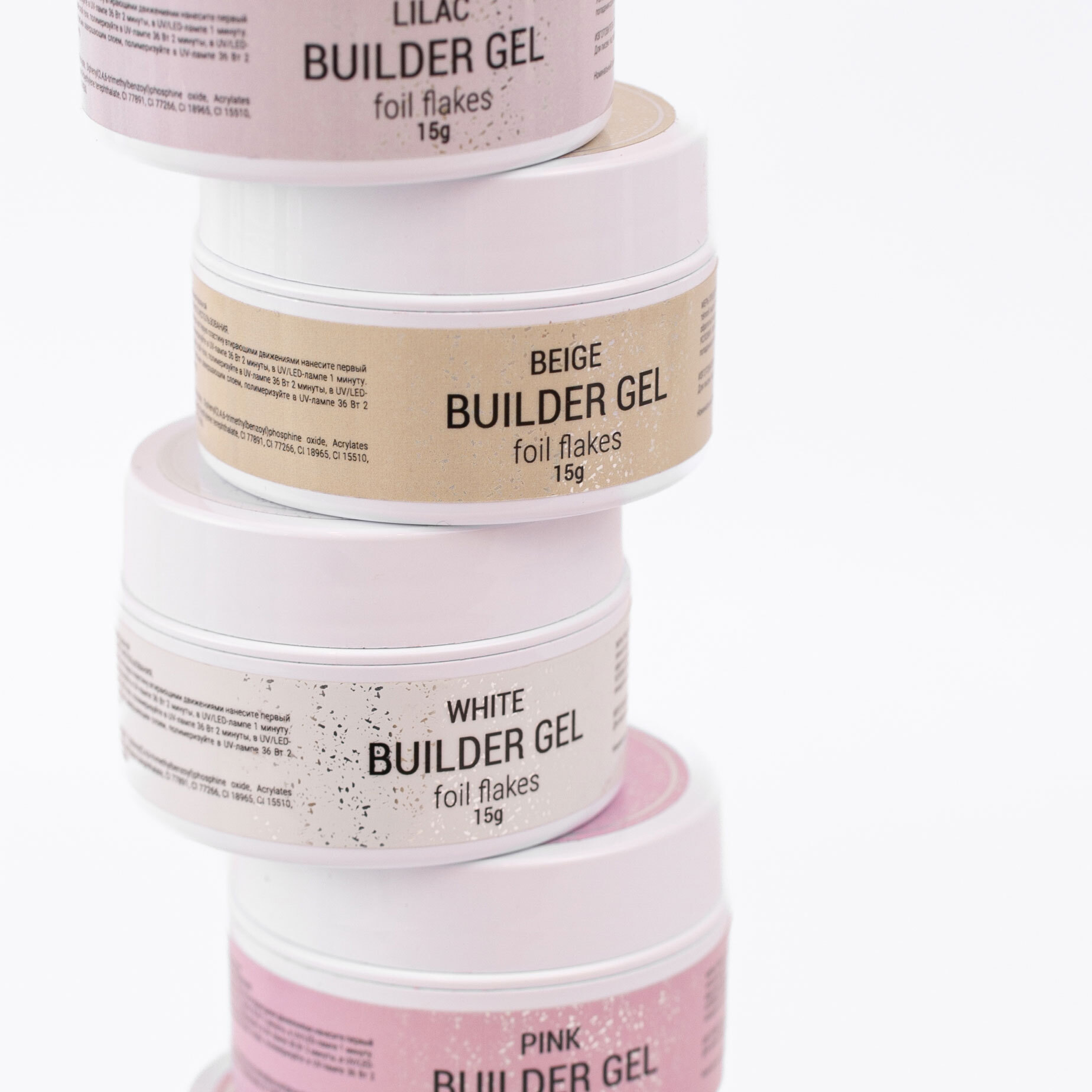 Коллекция нежных гелей с мелкой мерцающей серебряной поталью