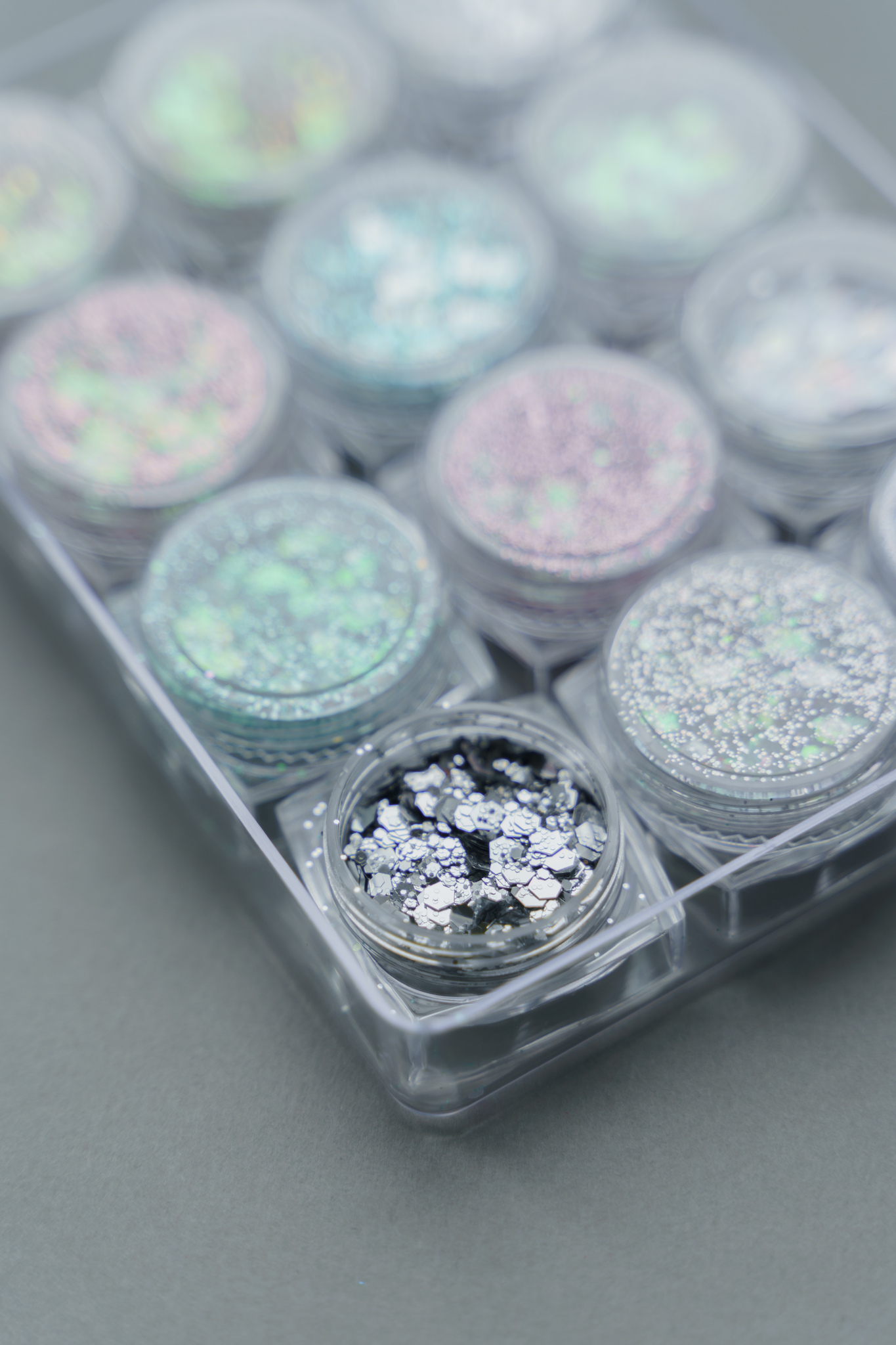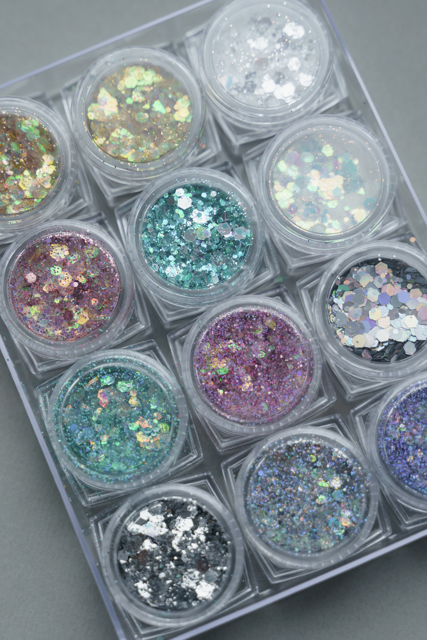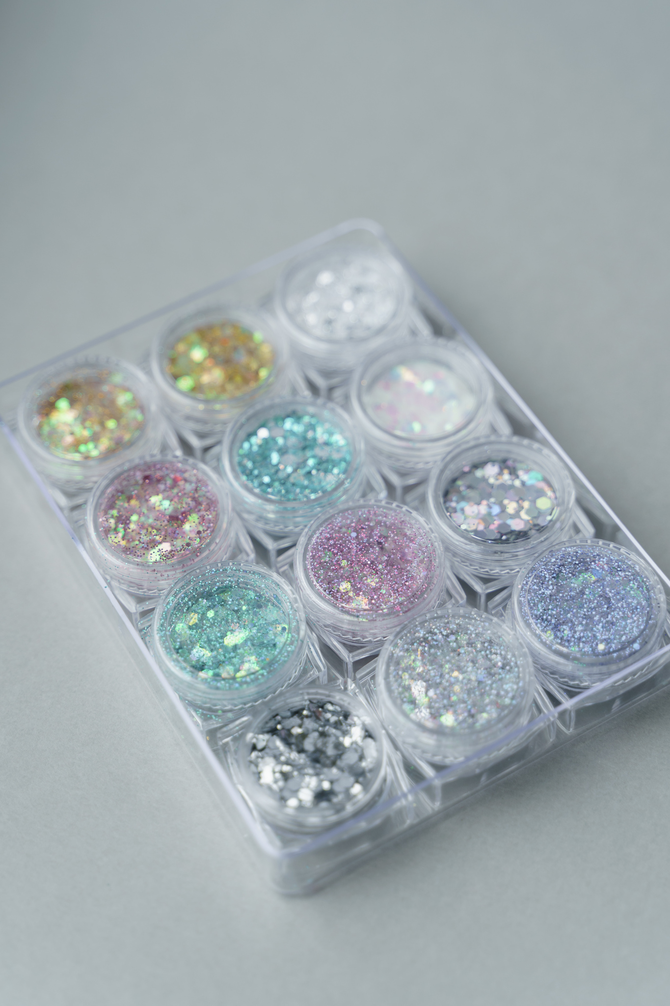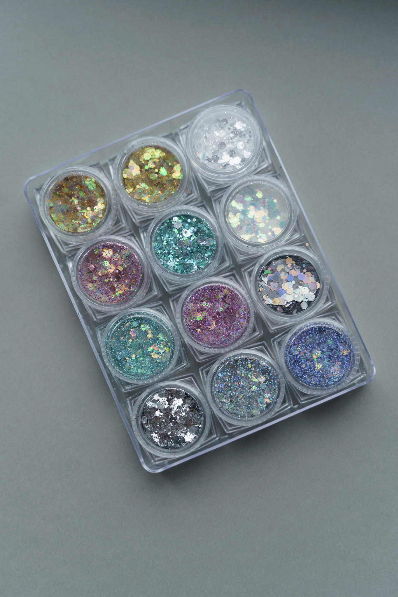 Роскошный декор для дизайна ногтей в виде тонких опаловых хлопьев. Маникюр с блестками не оставит никого равнодушным и украсит каждые ручки. В наборе 12 цветов блесток, такое разнообразие цветов точно подойдет на любой случай. Каждый оттенок хлопьев состоит из блесток разного размера, включает прозрачные, голографические и цветные частички. С помощью данного декора можно создавать аквариумный дизайн, добавив блестки в гель для наращивания, так же подойдет для натуральных ноготков и классического маникюра.