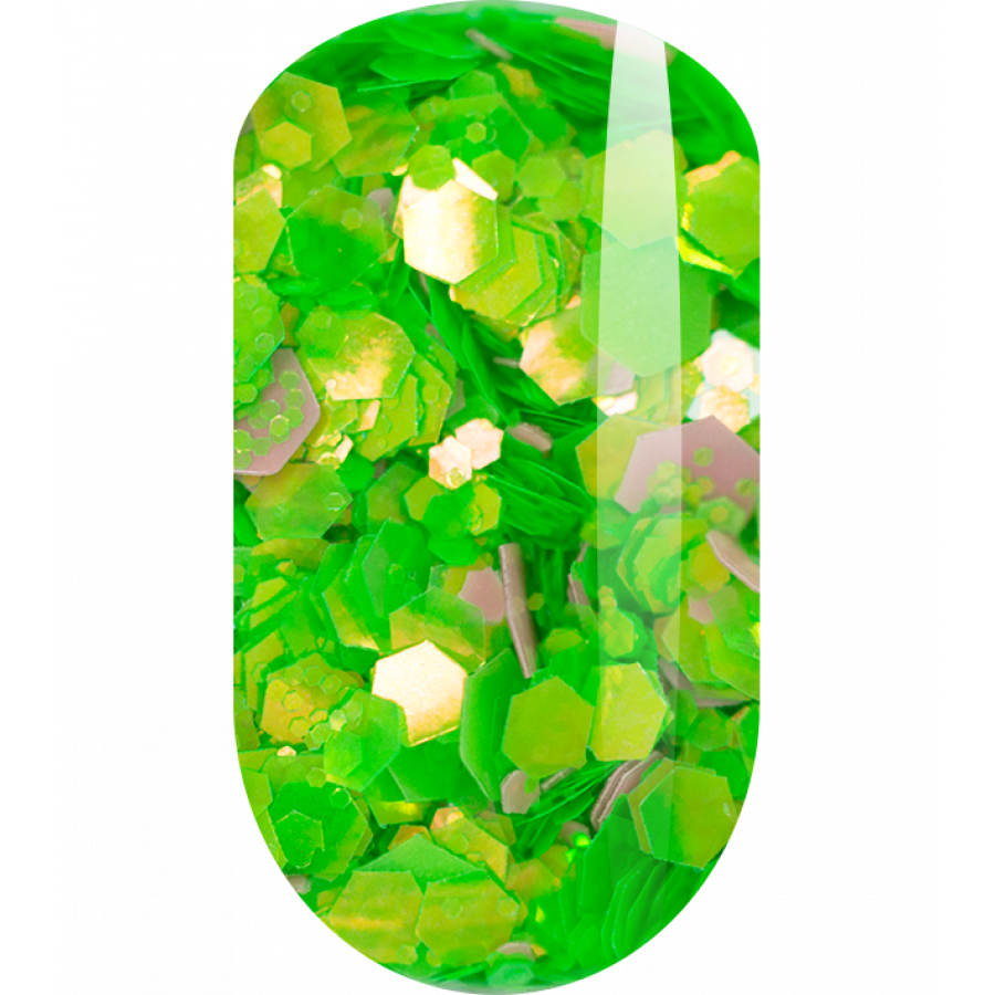 Дизайн GLOW NEON Коллекция из восьми оттенков неоновых шестигранников разного размера. Дизайн можно использовать как однотонное покрытие, как часть дизайна или для выкладного френча.