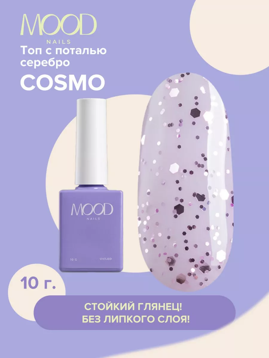 MOODNAIL Top Cosmo – Глянцевый, розовый топ с мелкими и крупными шестигранниками.