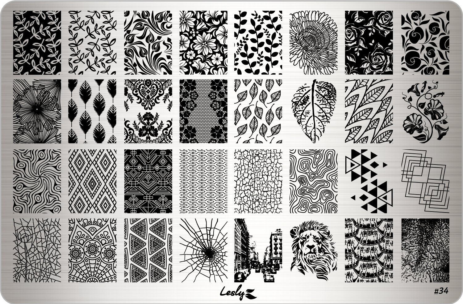 Бренд «Lesly» имеет мировую известность в бьюти-индустрии, в нейл-арте в частности. Основной продукт «Lesly» - плитки для стемпинга. Изготовлены из нержавеющей стали, имеют качественную гравировку. Каждая плитка помещена в индивидуальный картонный конверт со смотровым окошком. Модель: #34