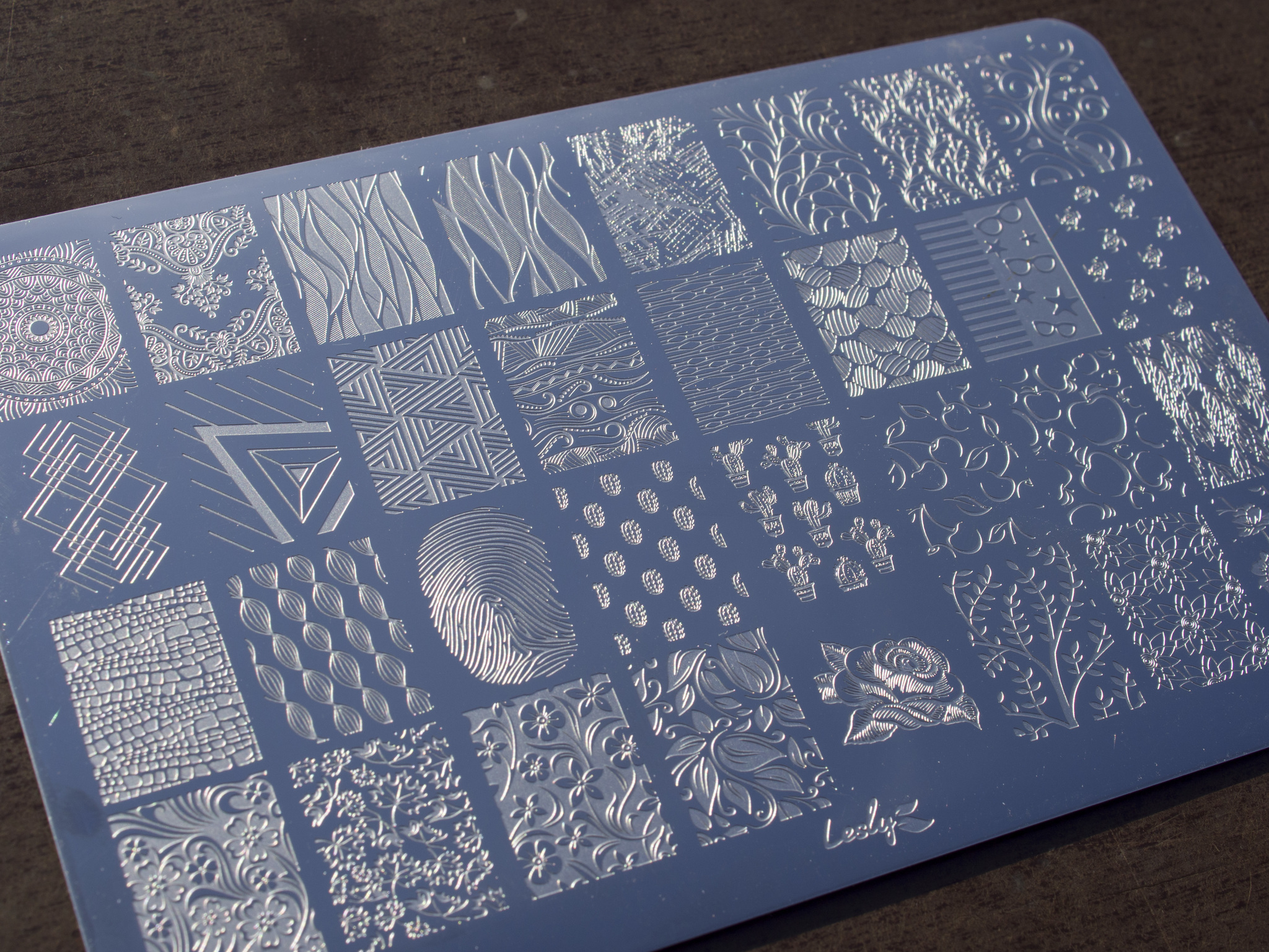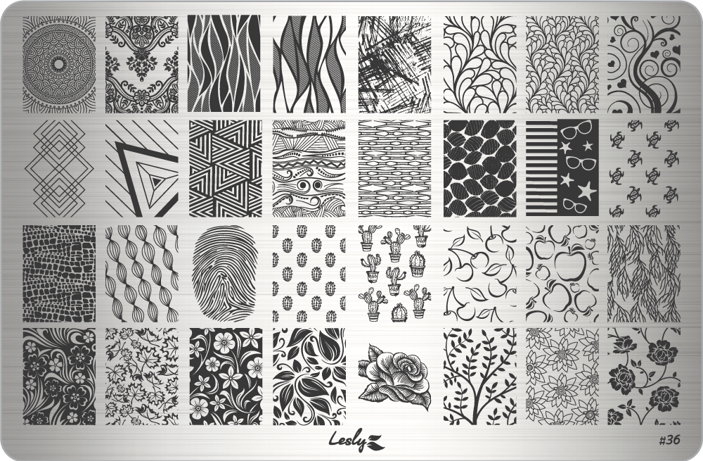 Бренд «Lesly» имеет мировую известность в бьюти-индустрии, в нейл-арте в частности. Основной продукт «Lesly» - плитки для стемпинга. Изготовлены из нержавеющей стали, имеют качественную гравировку. Каждая плитка помещена в индивидуальный картонный конверт со смотровым окошком. Модель: #36