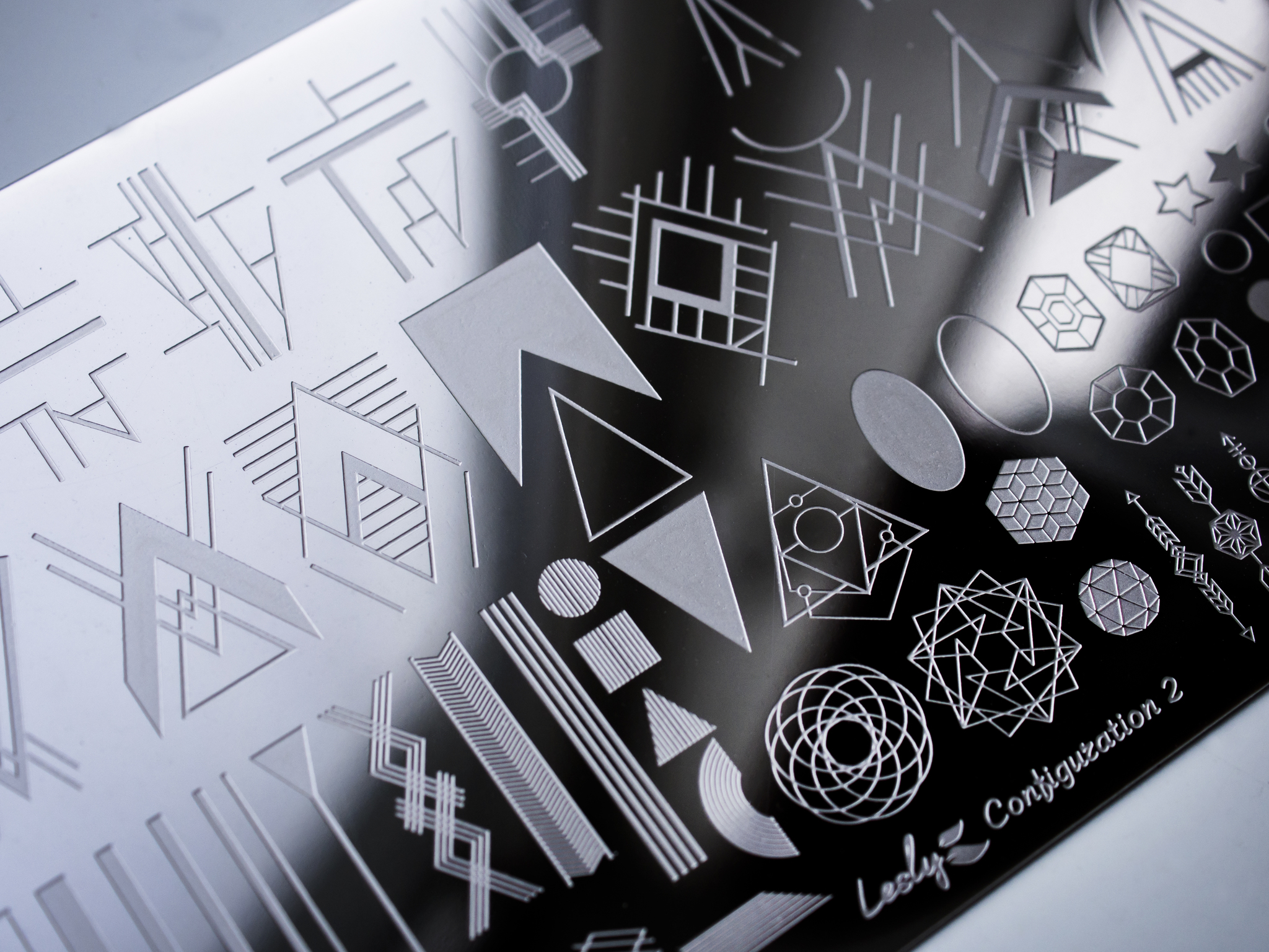 Бренд «Lesly» имеет мировую известность в бьюти-индустрии, в нейл-арте в частности. Основной продукт «Lesly» - плитки для стемпинга. Изготовлены из нержавеющей стали, имеют качественную гравировку. Каждая плитка помещена в индивидуальный картонный конверт со смотровым окошком. Модель: Configuration 2