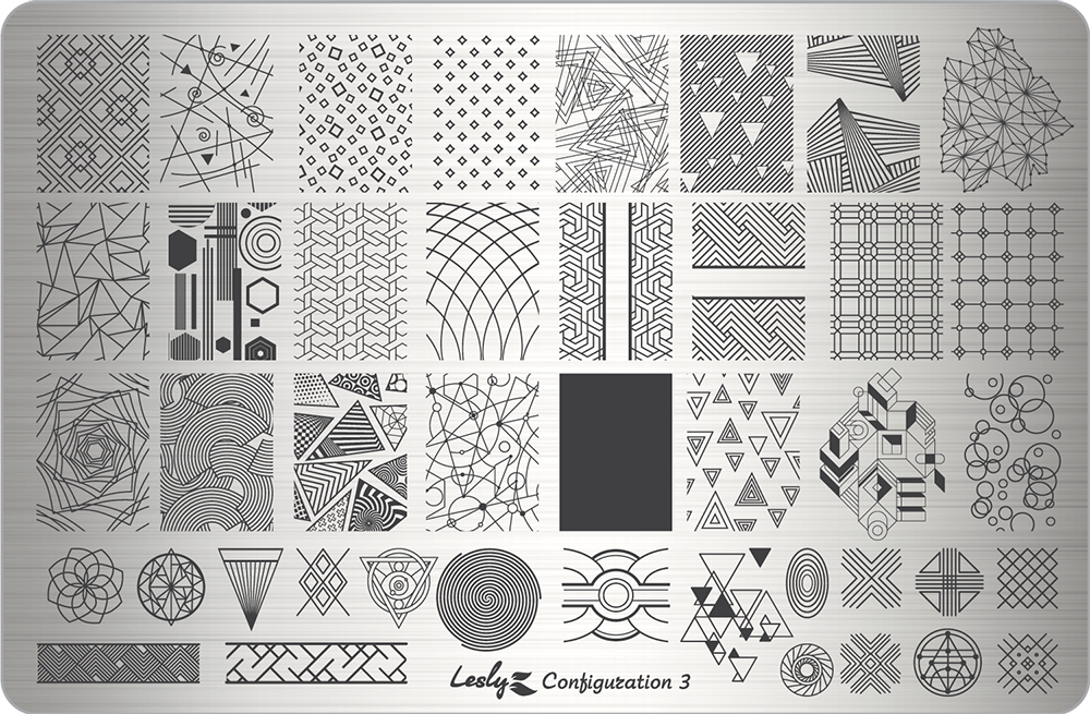 Бренд «Lesly» имеет мировую известность в бьюти-индустрии, в нейл-арте в частности. Основной продукт «Lesly» - плитки для стемпинга. Изготовлены из нержавеющей стали, имеют качественную гравировку. Каждая плитка помещена в индивидуальный картонный конверт со смотровым окошком. Модель: Configuration 3