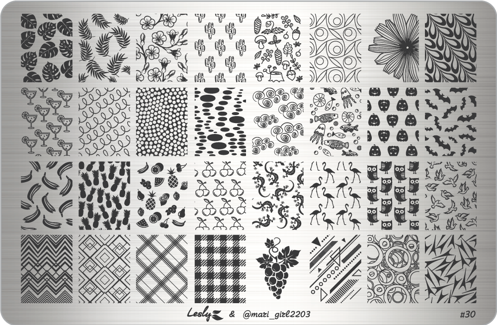 Бренд «Lesly» имеет мировую известность в бьюти-индустрии, в нейл-арте в частности. Основной продукт «Lesly» - плитки для стемпинга. Изготовлены из нержавеющей стали, имеют качественную гравировку. Каждая плитка помещена в индивидуальный картонный конверт со смотровым окошком. Модель: #30