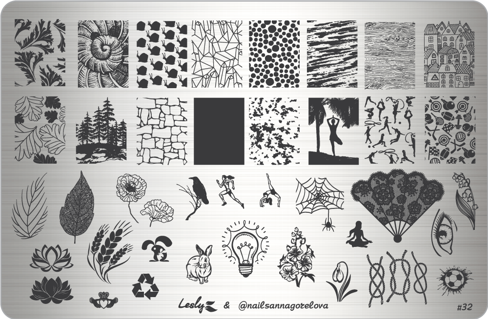 Бренд «Lesly» имеет мировую известность в бьюти-индустрии, в нейл-арте в частности. Основной продукт «Lesly» - плитки для стемпинга. Изготовлены из нержавеющей стали, имеют качественную гравировку. Каждая плитка помещена в индивидуальный картонный конверт со смотровым окошком. Модель: #32