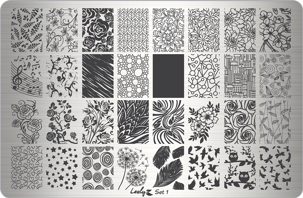 Бренд «Lesly» имеет мировую известность в бьюти-индустрии, в нейл-арте в частности. Основной продукт «Lesly» - плитки для стемпинга. Изготовлены из нержавеющей стали, имеют качественную гравировку. Каждая плитка помещена в индивидуальный картонный конверт со смотровым окошком. Модель: Set 1
