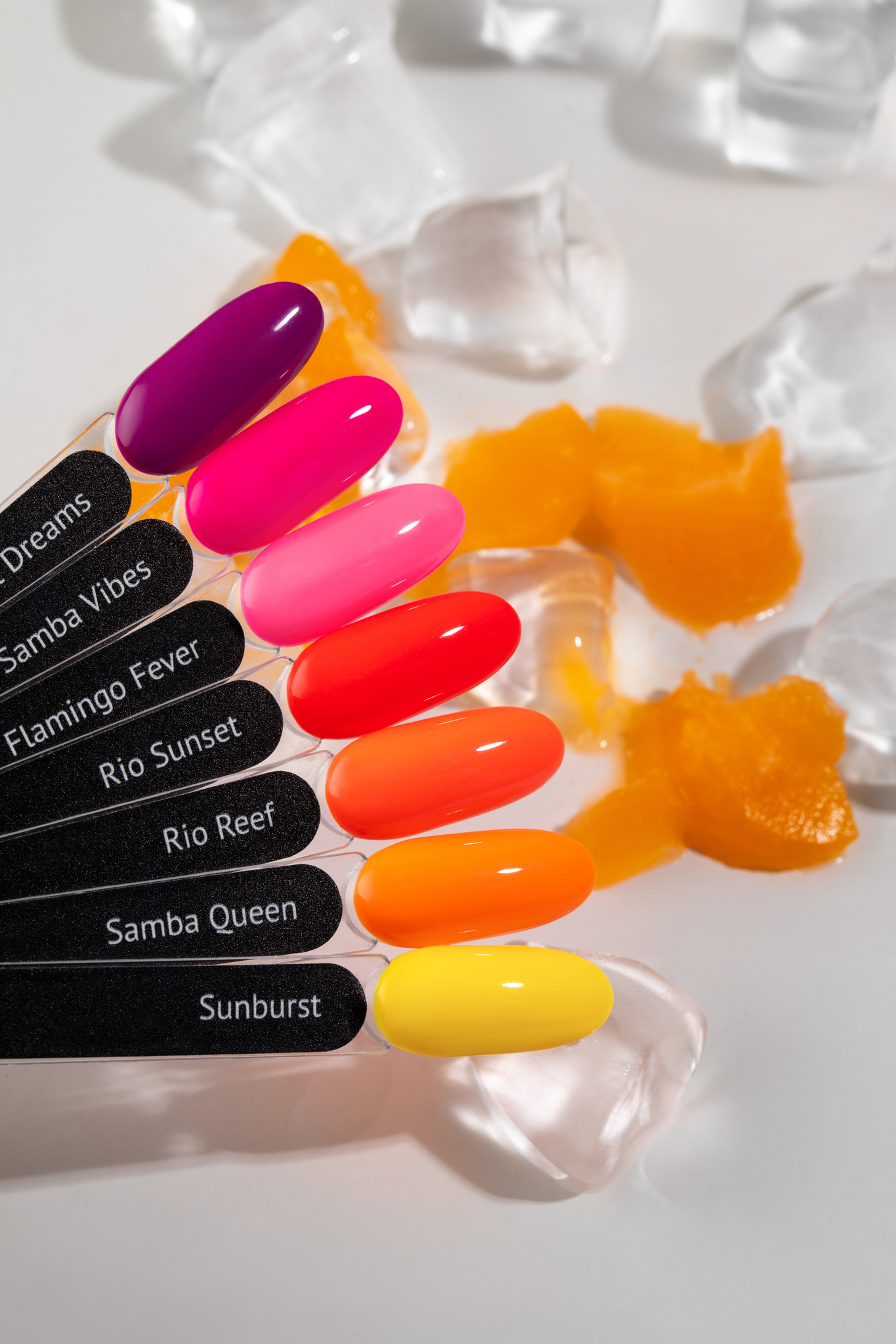В такт барабанному ритму, вдохновляясь головокружительным буйством цвета и атмосферой зажигательного танца, представляем гель-лаки, которые станут хитом летнего сезона. Подарите клиентам чувство свободы выбора, движения и наслаждения драйвовыми оттенками