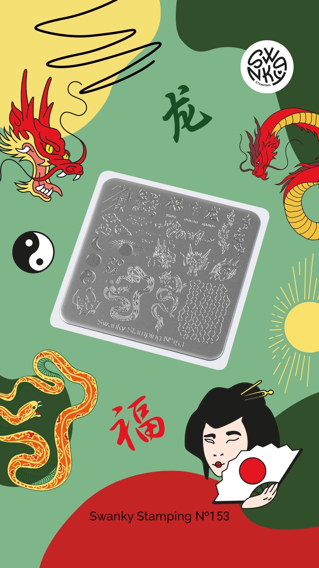 2024 — год зеленого дракона. Маленькая, компактная пластина несет в себе кусочек Азии, в ней вы можете найти: разные иероглифы, китайского дракона, паттерн чешуи, змей. Изображения прекрасно будут сочетаться между собой и самое главное отразят дух и настроение этого нового года.
