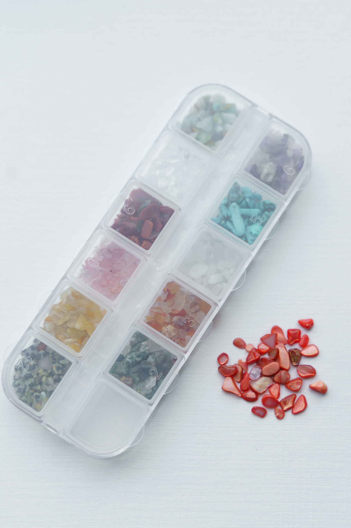 В комплекте 12 видов камней для самого неформального и необычного дизайна маникюра. Отличный вариант для украшения и декоративного оформления ногтей. Подойдет, как для искусственных , так и для натуральных ногтей.