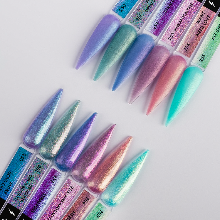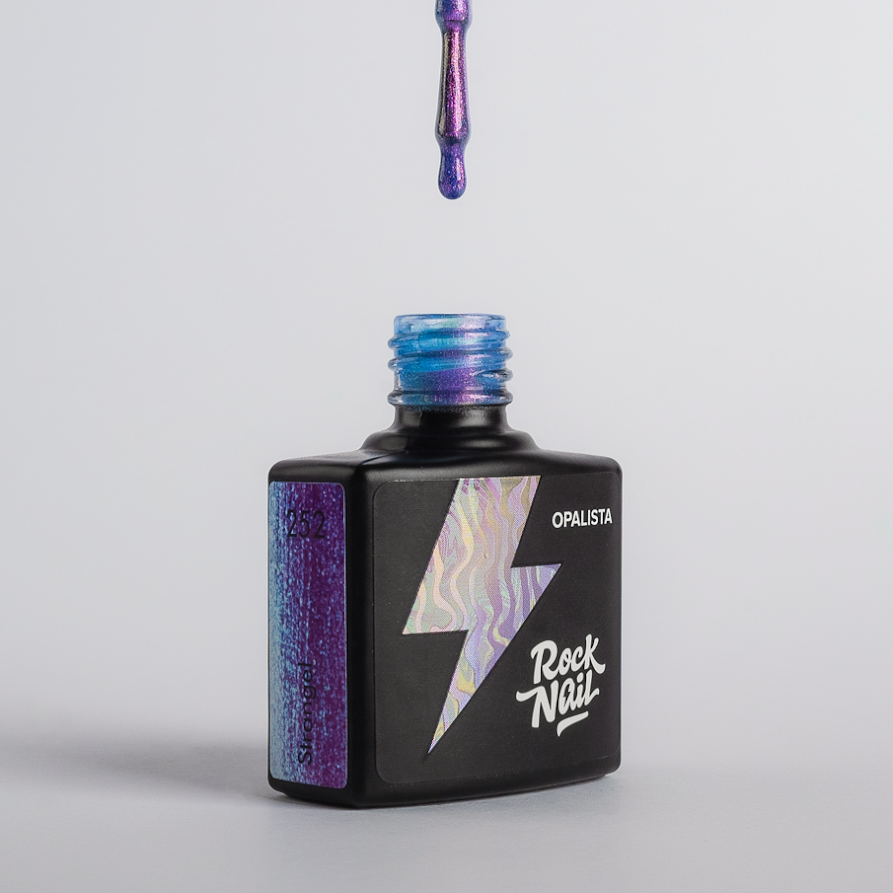 Гель-лак RockNail Opalista. Искрометная палитра из шести взрывных цветов - эффектные сияющие оттенки-дуохромы преображаются при каждом движении руки.