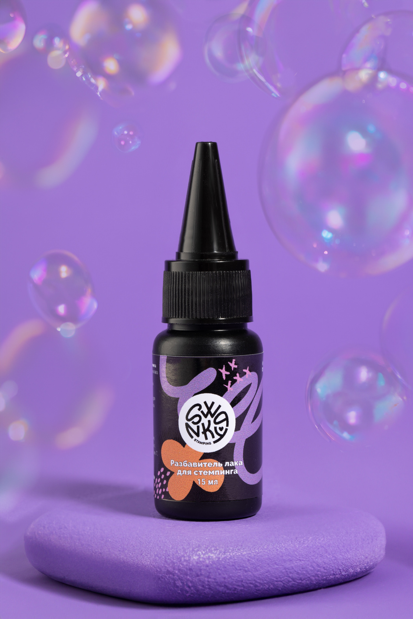 Применение: добавьте 4-6 капель жидкости во флакон с лаком для стемпинга и тщательно встряхните до полного смешивания.